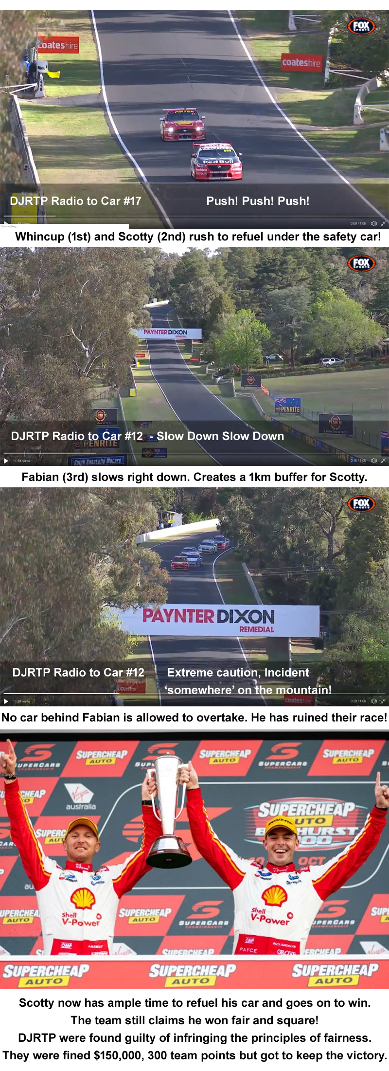 Dick Johnson Racing Team Penske pleaded guilty and were found guilty of infringing the principles of fairness in competition and behaved in an unsportsmanlike manner.
