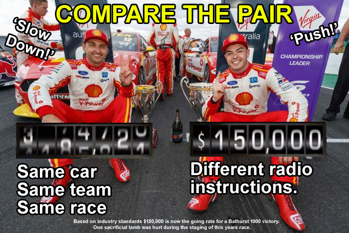 = A monetary fine of $150,000 is not a significant deterrent to a top racing team. A small amount to buy a Bathurst 1000 victory.