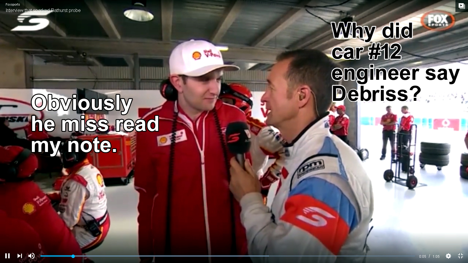 The fact that the engineer for car #12 mispronouncing the word debris as 'debriss' has also created speculation. Was he reading a note handed to him from someone else higher up in the team. He has denied this claim.